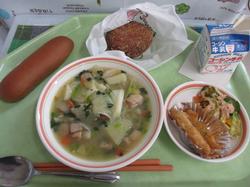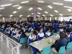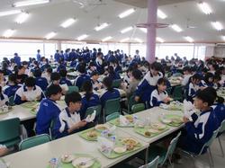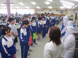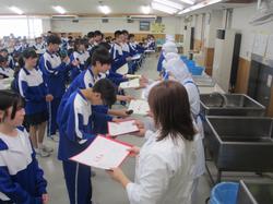 本日の給食です。「手作りカレー揚げパン」は、冷凍された専用生地を仕入れ、給食室で一から丁寧に仕上げています。生地の解凍・発酵管理、具材の調理、一つひとつ包餡し、揚げる工程まですべて手作業で、手間と時間を惜しまないからこそ、外はサクッと中は香り豊かなおいしさが生まれます。節目の日にはカレーをという栄養士の想いも詰まったカレーパンを、生徒は笑顔で頬張っていました。また、本日は令和7年度の給食最終日ということで、給食終了後には給食委員の生徒から栄養士と調理員のみなさんにお礼のお手紙が手渡されました。1年間、安全安心で美味しい給食を提供いただき、ありがとうございました。
