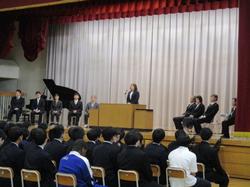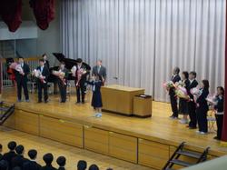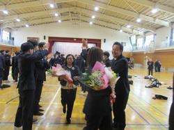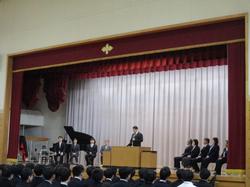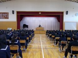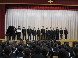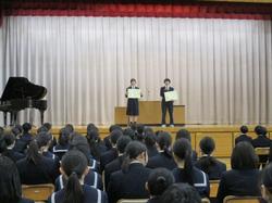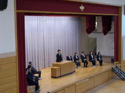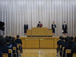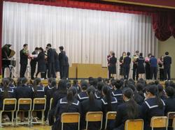 本日、修了式と辞校式を行いました。修了式では、各学年や生徒会の代表が、それぞれ壇上で全校生徒を前に、今年度を振り返り、次年度に向けた決意表明を堂々と話しました。校長からは、一年間の成長を称える言葉があり、温かい雰囲気の修了式となりました。続く辞校式では、転退職される職員から心温まる挨拶があり、感謝の拍手で見送りました。これまでのご尽力に感謝するとともに、新天地でのご活躍をお祈りします。