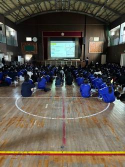 本日、学区内にある貝の花小学校、栗ケ沢小学校の6年生と、本校の1年生及び8組生徒による、小中交流会を行いました。例年は栗ケ沢中学校を会場としていましたが、今年は体育館が改修工事中のため、栗ケ沢小学校での開催となりました。栗ケ沢中学校の生活等について、スライド等を用いて栗中生から紹介した後、グループごとに分かれて、小学生の疑問に中学生が答えていました。4か月後の生活をイメージする、良い機会になったのではないかと思います。