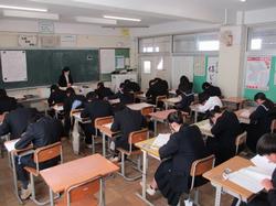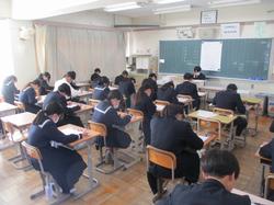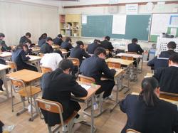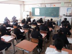 本日の授業の様子です。3年生は、実力テストを行いました。学校で行う最後の実力テストであり、今回の結果を受けて出願する高校を決定するという生徒が多いということで、本番さながらの緊張感のある雰囲気の中、真剣な表情でテスト問題に取り組んでいました。進路実現を控えた3年生にとっては、今がまさに正念場です。開けない夜がないように、春は必ず来ます。目標に向かってラストスパートを全力で駆け抜けてほしいと思います。