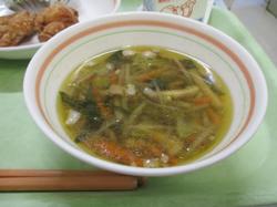 本日の給食です。「沢煮椀」は、豚肉と細切りにした野菜を使った日本の汁物で、あっさりとした味わいが特徴です。野菜は大根、にんじん、ごぼうなどを細く切り、豚肉とともに煮て、塩やしょうゆで薄味に仕上げた、素材の旨味を活かした滋味豊かな料理です。元々は武家料理として生まれ、現在では家庭料理や懐石料理の一品として親しまれているそうです。本日はしょうゆ味で提供され、味が良く染み込んだ細切り野菜がたくさん入っていて、とても美味しかったです。
