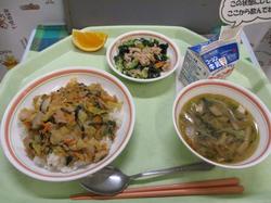 今年度から開始時期が早まり、始業式翌日の本日より、給食の提供が始まりました。メニューは「豚キムチ丼、わかめツナサラダ、沢煮椀(さわにわん)、オレンジ、牛乳」です。「沢煮椀」は、千切りにした大根やにんじん、豚肉などの具材を使い、素材のうま味を生かしたさっぱりとした味わいが特徴の汁物です。具沢山で食べ応えもあり、美味しかったです。今年度も、安全で美味しい給食を通して、子どもたちの健やかな成長を支えていきます。
