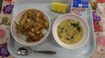 厚揚げ入り豚キムチ丼 春雨スープ 杏仁ミックス 牛乳 |