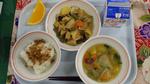 回鍋肉丼 中華コーンスープ パインアップル 牛乳