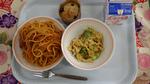 トマトとなすのスパゲッティ こぎつねビーンズサラダ ブルーベリーマフィン 牛乳