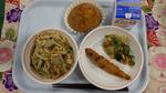 秋の香りご飯 生揚げの肉巻き からし和え 味噌汁 みかん 牛乳