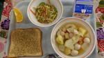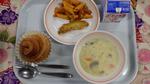 スパゲッティペスカトーレ ポテト豆スープ パンプキンパイ 牛乳 |