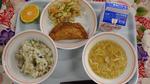 丸パン タンドリーチキン ジャーマンポテト コンソメスープ りんご 牛乳