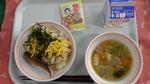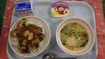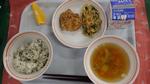 わかめご飯 鶏肉の唐揚げ ほうれん草と切り干し大根の胡麻和え やさいときのこたっぷりスープ