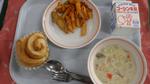 手作りシナモンロール 白いんげん豆のシチュー わかさぎのフリッター ペンネアラビアータ 牛乳