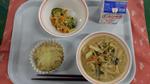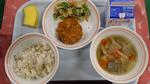 ご飯 ツナふりかけ カレー肉じゃが 味噌汁 ポンカン 牛乳