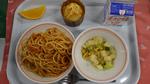 トマトとツナのスパゲッティ フレンチポテトサラダ チーズマフィン オレンジ 牛乳 |