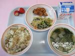 | 6年生が家庭科の時間に、1食分の献立を作成しました。今日は6年3組が考えてくれた日。栄養のバランスがよく、どのクラスもほぼ完食でした。 |