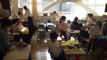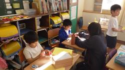 1年生 図工 箱を組み合わせた作品作り(12月12日)