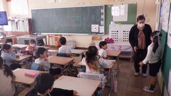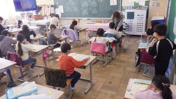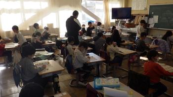 1年生 書き初めの練習 明後日が校外学習(12月15日)
