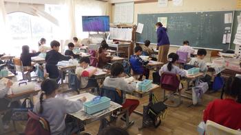 1年生 音楽 打楽器でリズム打ち(1月14日)