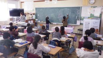 何人か黒板に絵を