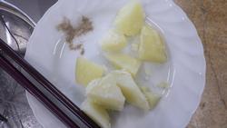 こふきいもを調理していました。