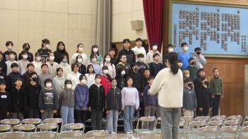 6年生 卒業式の呼びかけと歌の練習(3月6日)