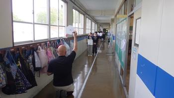 廊下で視力検査をしていました。