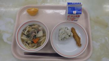 田舎風うどん、わかめおにぎり(10月9日)