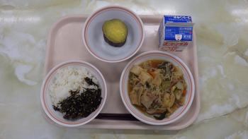 「おはなし給食~やきいも大会~」すきやき風煮、やきいも(10月24日)