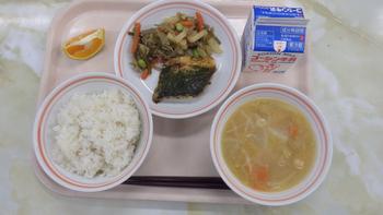 サバの南部焼、じゃがいもとワカメのきんぴら(12月1日)
