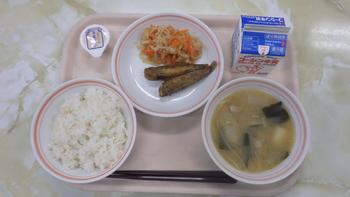 「地産地消献立」めひかりの唐揚げ、さつまいもとかぶのみそ汁(12月2日)
