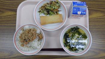 「6年生代表献立」とりそぼろ、スイート春巻き(2月16日)