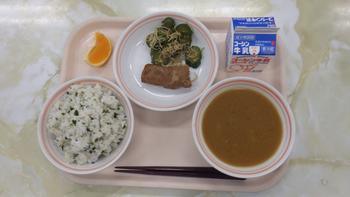 わかめごはん、厚揚げの肉巻き(4月13日)