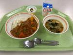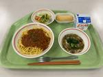 ミートソースがスパゲッティと合っていておいしかったです。コーンサラダは、とてもさっぱりしていて食べやすかったです。