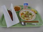 ココア揚げパンは、パンとココアパウダーの相性が良く食べ応えがありました。豆とうずらの卵ポトフは、やさしい味わいで素材の味を引き立てていておいしかったです。マカロニソテーは、マカロニのもっちり感とトマトの旨味がマッチしていてとっても美味しかったです。