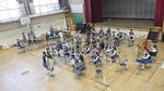朝の7:30に学校に集合して、体育館で練習を行いました。