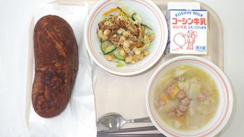 8日(月)ココア揚げパン ポトフ ごぼうと大豆のパリパリサラダ 牛乳