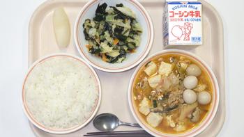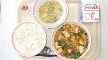 17日(水)ごはん マーボー豆腐 春雨サラダ 一口リンゴゼリー 牛乳