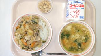 18日(木)プルコギ丼 白玉入りスープ きなこ豆 牛乳