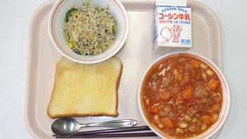 29日(月)ハニートースト チリコンカン ぱりぱりサラダ 牛乳