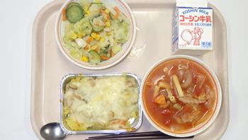 1日(水)チキンドリア コーンサラダ ミネストローネスープ 牛乳