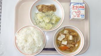 4日₍火₎ごはん さばのねぎ味噌焼き あおのりポテト 秋野菜と豆腐の味噌汁 牛乳