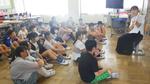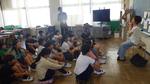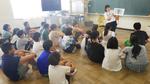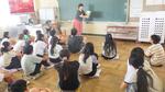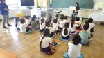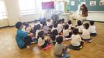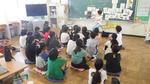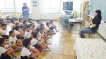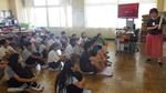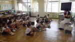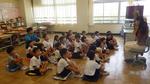 写真は1年生と6年生を撮影したものです。写真の本は本は1年生のクラスで読まれた本を紹介しています。みんな集中してお話を聞いていました。