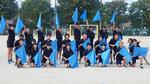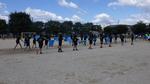 プログラムNo.17 みらいろ~未来を彩る色~ 一人1本フラッグを持って踊ります。5年生は緑、6年生は青。衣装は5年生が藍染めTシャツ、6年生が黒Tシャツ。最後に暮らすごとに決めポーズを取ります。ここが最大のシャッターチャンスです。