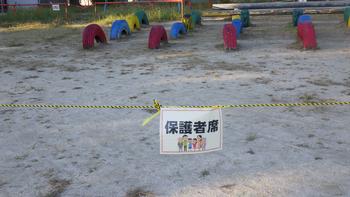 保護者席には黄色と黒の虎ロープが張ってあります