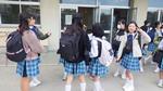 8:20全員揃って学校を出発しました。「がんばってきます!」