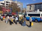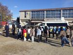 連日、松戸警察の方に来ていただいています。この日は、移動交番が来てくれて、3年生を対象に警察の方が普段使用しているのと同じ道具に触れさせてくれたり、移動交番の車内に乗車させてもらったりしました。