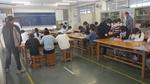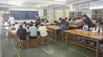 猫の絵の木版画家で有名な大野隆司さんを講師としてお招きし、図工室で各クラス1時間ずつ版画の基礎を教わりました。