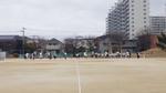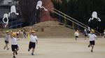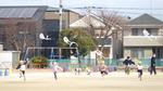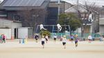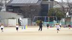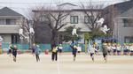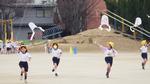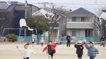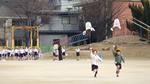 この日の1時間目、1年生は校庭でたこあげをしました。手作りのビニールたこを校庭の端から端まで走って、高さ約5mほどまで上げてゴールというたこあげを2回ほど繰り返して行いました。