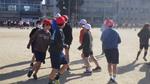 クラスがAB2チームに分かれ、それぞれ3分間に跳んだ回数の合計で競います。ここまでの最高記録:1年生は2組の67回、2年生は2組の225回、3年生は1組の464回、4年生は2組の414回、5年生は1組の480回、そして6年生はこの日達成した3組の554回です。3分間の2チーム、つまり360秒で554回跳んだというのは、1秒に1.5回跳んだことになり、すごいことなんです。