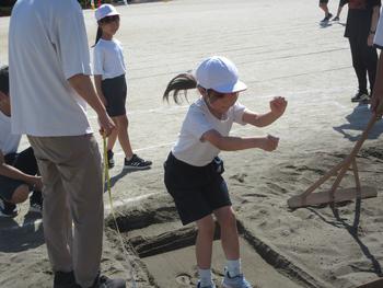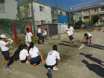 25日に新体力テストに取り組みました。6年生が手伝ってくれました。みんな頑張っていました。