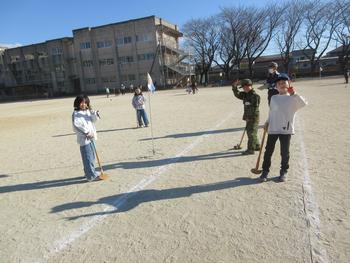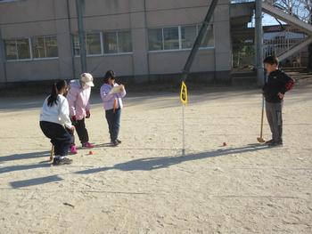 地域学校連携委員会のスポーツボランティアのみなさんが中心になってグランドゴルフ大会を行いました。