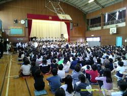 明後日に控えた小中合同音楽会。市内の小中学校が三日間に分かれ一堂に会する演奏会に、本校ブラスバンド部も参加します。今日はその激励会を全校で行いました。会では、ブラスバンド部に本番と同じ曲目を演奏してもらいました。全校の前で演奏するのはさぞかし緊張したことでしょうが、なんともたくましく、迫力ある演奏を披露してくれたブラスバンド部。本番もきっと素晴らしい演奏を披露してくれることでしょう。コツコツ積み重ねた練習の成果は、こうしてたくましく花開くのですね。是非本番も自信を持って演奏してきてほしいです。
